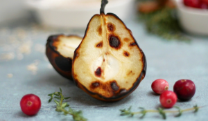 - Flip the pear halves and drizzle the We Olive Balsamic Vinegar on the pears. Continue roasting for further 5 minutes.